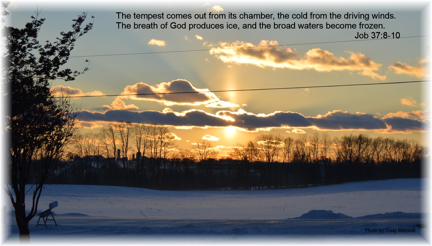 <Previous Message Next Message> Monday, February 2, 2015 ![]() We had more snow overnight and our area is covered in a bright white blanket. My neighbor, Doug, took this sunset photo of the field across from our home. My temporary "redneck" sawhorse mailbox is in the lower left of photo. (Click on photo to enlarge) "The Pattern" No podcast available for this message (Can't get the microphone to work!)