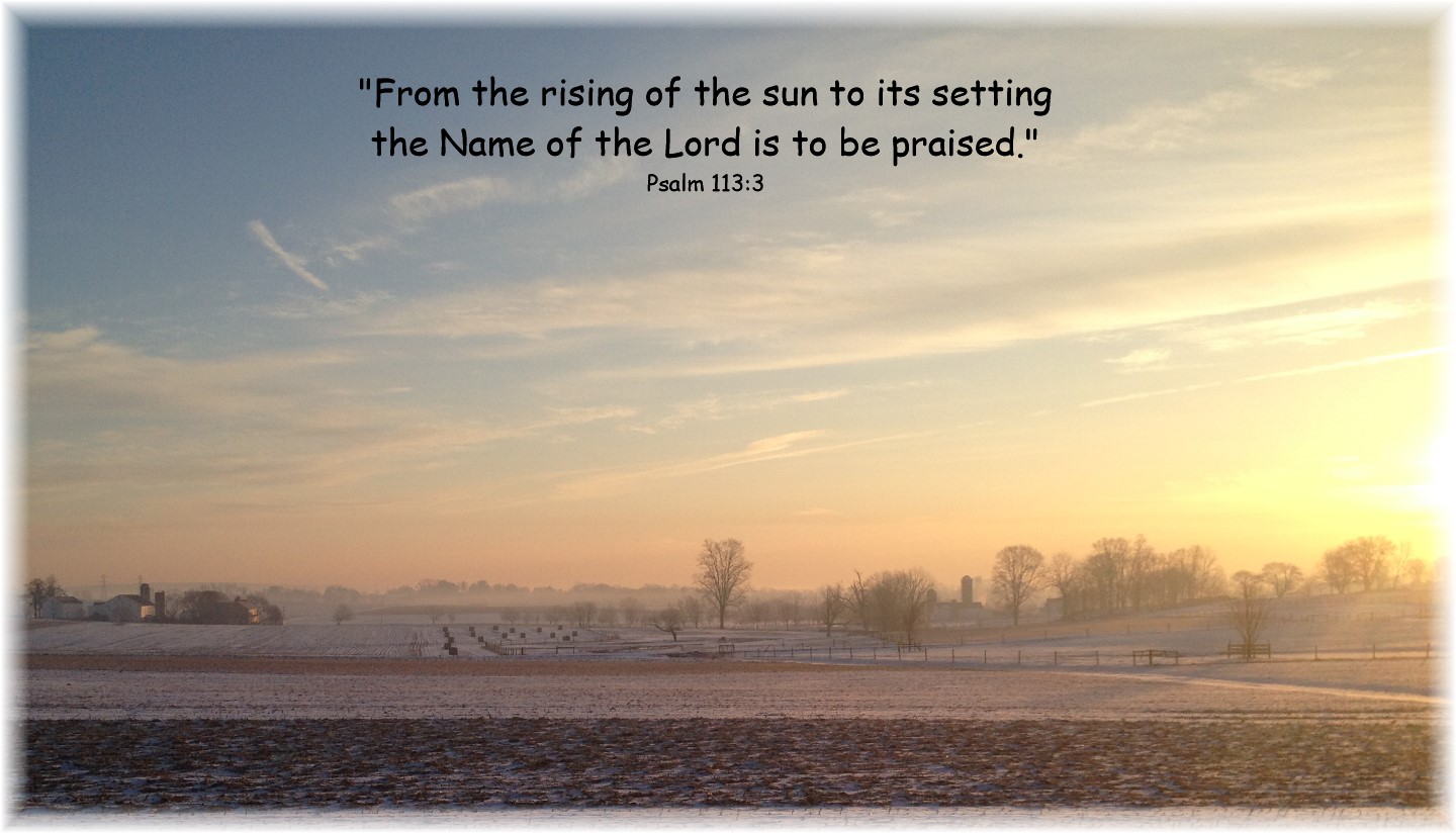 <Previous Message Next Message> Thursday, February 19, 2015 ![]() Sunrise over rural Lancaster County, PA 2/18/15 Click to enlarge. "From The Rising Of The Sun" ![]() "From the rising of the sun to its setting the name of the Lord is to be praised" (Psalm 113:3). "As is Your Name, O God, so is Your praise to the ends of the earth; Your right hand is full of righteousness" (Psalm 48:10). When we left for chaplaincy visits yesterday morning before sunrise the temps were below zero. Our first stop takes us across the County where we visit with employees at a home improvement company and laser shop. Before our visit we prayed for these hardworking employees who must work in harsh temperatures. As I was visiting with some roofers I looked out over a loading dock and viewed the sunrise in our lead photo. The snow sure makes for some nice landscape photos. A reader from the Caribbean wrote that he had only seen snow in photos. I suppose many in our parts and certainly New England would now say, "We've seen all we want to see!" The changing seasons, including wintery seasons of snow, present a variety in the landscape, the vegetation, outdoor activities, clothing attire, and extremes in temperatures. At this point many of us who've settled in for a few cold months are now ready for a thaw! This sign, "free snow" made us chuckle when we saw it alongside the road, although we doubt if there were any takers. The first daily Scripture is set to music. Perhaps you sing it and know it by memory: "From the rising of the sun to its setting the Name of the Lord is to be praised." What an interesting way the Psalmist expresses the universal call to praise the name of the Lord to all the people on this planet. This call is not limited geographically, for each part of planet earth experiences the rising and setting of the sun. This call is not limited to a specific time, for this event happens daily, and in fact is always happening. This call is not limited to a specific people, for all peoples on earth today live where the sun rises and sets. (Now, some astute observer will probably point out that there are certain times of the year when the sun never sets at the Polar Regions)! We have many choices today. Some are relatively inconsequential, others are very important. The most important choice we make is to love and serve God. And one way we can do that is by joining millions of our redeemed brothers and sisters on this earth in praising the name of the Lord! Be encouraged today, Stephen & Brooksyne Weber ![]() ![]() Here's another photo from a different direction of the red barns on Harvest Road we showed in yesterday's photo. Click to enlarge. ![]() ![]() ![]() Visiting the employees at a machine shop yesterday we saw 90 year old Gene walking his dog through the plant. He worked at the plant through his 90th birthday early last year and finally retired but still likes to walk through the plant to visit his friends. We were both glad to see him along with his grandson's dog, Daisy. Finally today: ![]() With all the snow they are having in New England some have been "Blizzard Jumping" that is, jumping out of windows and off roofs into huge snow piles. Ester found this old photo from some twenty years ago of me blizzard jumping when we lived up that way in the mid-nineties. In this case I was jumping off the roof.