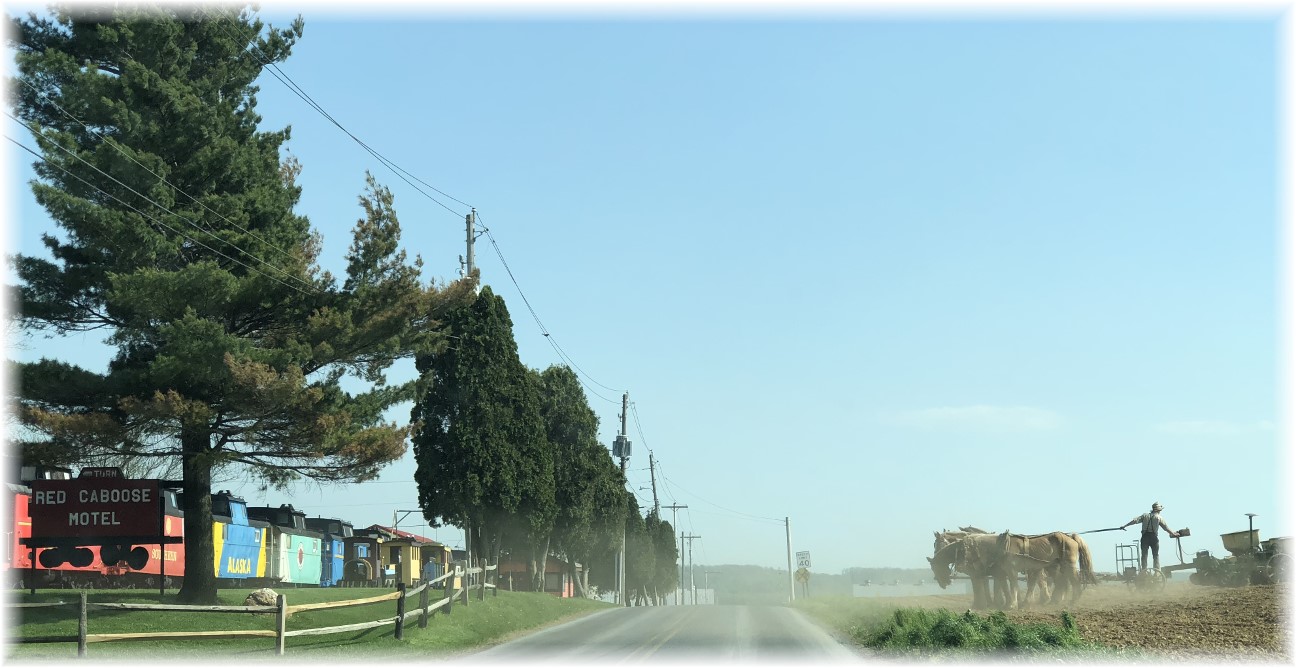 heaven for me where I will receive eternal blessing. What mercy, what love and what grace! Amen.We had a beautiful summer day yesterday and we saw hay harvest and corn planting. ![]() Hay harvest, Lancaster County, PA This baler will make the small square bales like I used to put up the first year of our marriage near Springfield MO. Click on photo to enlarge ![]() Hay harvest, Lancaster County, PA These are the large round bales Click on photo to enlarge ![]() Corn planting, Lancaster County, PA To the left is the Red Caboose Motel where guests can stay in an old railroad caboose! Click on photo to enlarge ![]() We stopped by to visit with the Lapp family at the Old Windmill Farm where you can always hold some animal, in this case a bunny! Today's