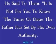 sought answers.Christ's answer to their question, His final words prior to His ascension back to heaven, was that it wasn't for them to know the times or dates the Father had set by His own authority, but the Spirit would empower them to be His witnesses (v. 8). Do you think the disciples were satisfied with that answer? Do you suppose some grumbling took place among them such as, "That's not what we asked about. Did He not hear us? Why doesn't He tell us more? What if?"