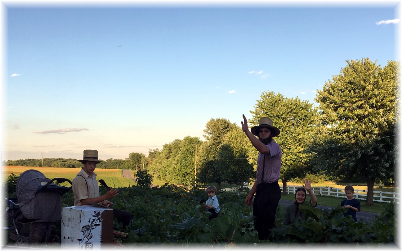 not give up. Amen.![]() Our neighbors harvesting their heirloom rhubarb on Kraybill Church Road, family project. (Click to enlarge) ![]() This looks like an aerial view of a local house, but it's actually a display at a nursery featuring a miniature house with flowers and succulents. Today's