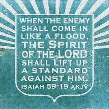 the enemy of our soul.The Bible speaks of this enemy as a thief who comes only to "steal and kill and destroy" (John 10:10) and as "Your adversary the devil who prowls around like a roaring lion, seeking someone to devour" (1 Peter 5:8). This meaning is alluded to in the words of Martin Luther's great hymn, "But still our ancient foe, doth seek to work us woe." Indeed he still does. Most of us have had experiences in life when it seems the troubles of life come in like a flood. It may be a health crisis, accident, job loss or many other sources. We prayerfully consider the grieving family of the young girl lost in the flooding waters Monday night and the unexpected "flood" they are enduring, even as their experience is very much in the public eye. But note the glorious promise in the latter part daily verse: "The Spirit of the LORD shall lift up a standard against him". Again in the initial literal sense this was speaking of the actual enemy of the nation of Israel and God's desire to help in their time of need. The word, "standard", in the Hebrew means "something lifted up, standard, signal, signal pole, ensign, banner, sign, sail, as rallying point." Bible teacher David Guzik comments on this passage, "The enemies of the LORD will never triumph over Him. Even if they come in like a flood, and seem unstoppable, the LORD will lift up a battle-standard against him, and he will be stopped. God gives His people the glorious privilege of being more than conquerors (Romans 8:37), but will win it with or without us." When surging floods come in our lives we need to remember to whom we belong and rely on Him to help us in our time of need. Be encouraged today, Stephen & Brooksyne Weber Daily prayer: