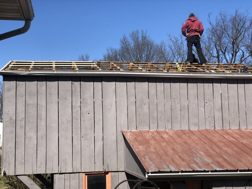 main portion of our barn roof using new metal