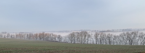 peeking through the fog.