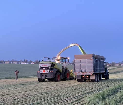 Though we trust His perfect plan we sometimes question why. All the tears we've cried. Every sleepless night. Late yesterday afternoon my neighbor, Janden, stopped by in a golf cart and asked if I wanted to go see the Rye harvest. Janden is a young man who works in the parts department at one of our area's farm equipment dealerships. He was excited about showing me a new 850HP chopper his company had just sold to a local farmer. What a sight to see this huge machine at work! ![]() Today