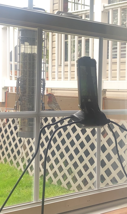 finch feeding right outside our office window