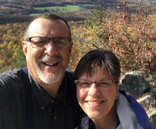 1:3).Yesterday morning we hiked a very small portion of the Appalachian Trail to Kimmel Lookout near Bethel, PA. The lookout offers a panoramic view looking south of Berks and Lebanon Counties. We walked down the trail to the lookout and took photos, somewhat disappointed by the overcast skies, before returning to the trailhead along PA Rt. 501 where we had parked. At that point the bright sun came out so Brooksyne suggested, "Let's go back" and that's just what we did. It was worth it and we are pleased to share several photos today, although we also have some from our autumn leaves collection. The Appalachian Trail in most places is nothing more than a narrow path beaten down by many years of foot traffic. We have walked the trail here in the northeast as well as Virginia and North Carolina. It's not all a rustic path though. It uses the busy I-80 bridge to cross the Delaware River between Pennsylvania and New Jersey! (See here). We have never walked the entire length which is quite a feat but on many occasions have walked the entire width! Yesterday the trail was covered with leaves hiding the perils of protruding rocks so we treaded carefully, especially going downhill. But the colorful leaves also added to the beauty of the hike and Brooksyne collected an assortment to bring home to Ester. We're in the autumn season when leaves from the deciduous trees have changed their colors and texture. Red, yellow, orange, brown, and crimson hues are still on trees but are also strewn on the ground and gathered in piles at fence lines and among the bushes. As the season progresses trees go through a process known as abscission; that is, they drop their leaves. We have two oaks with an interesting