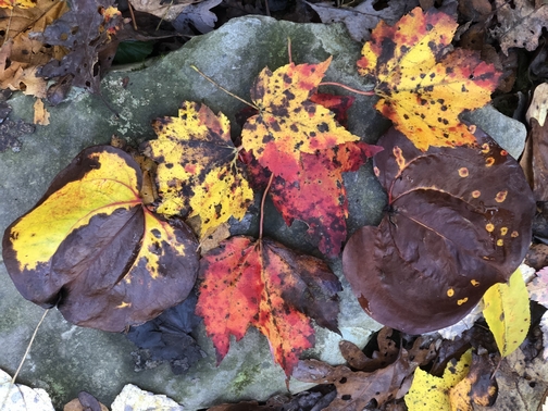 a variety of leaves Brooksyne picked up to