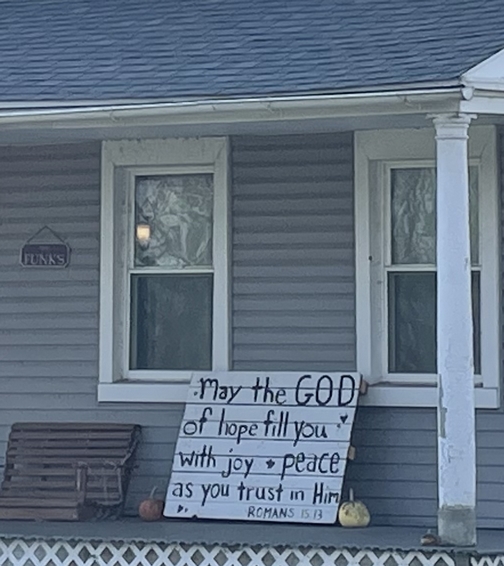 ![]() We are blessed to see so many expressions of faith as we travel the backroads here in Lancaster County. Last Friday this inspirational sign caught our attention in Manor Township. Turning old pallets into signs is a great way to repurpose! See here for a close-up photo which prompts today's message. "The