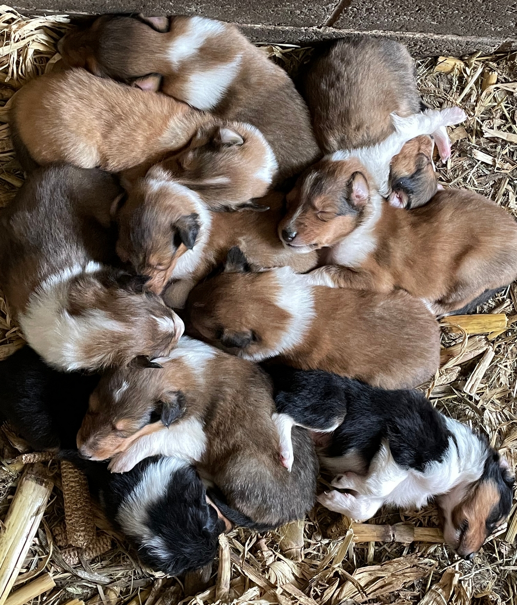 ![]() Collie puppies nestled together on the Old Windmill Farm. Can you count them?