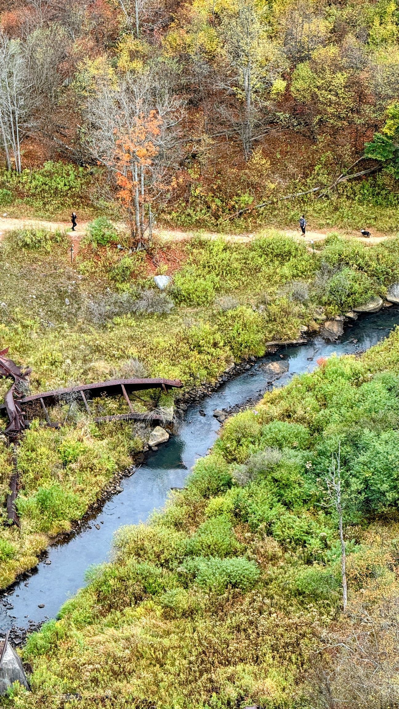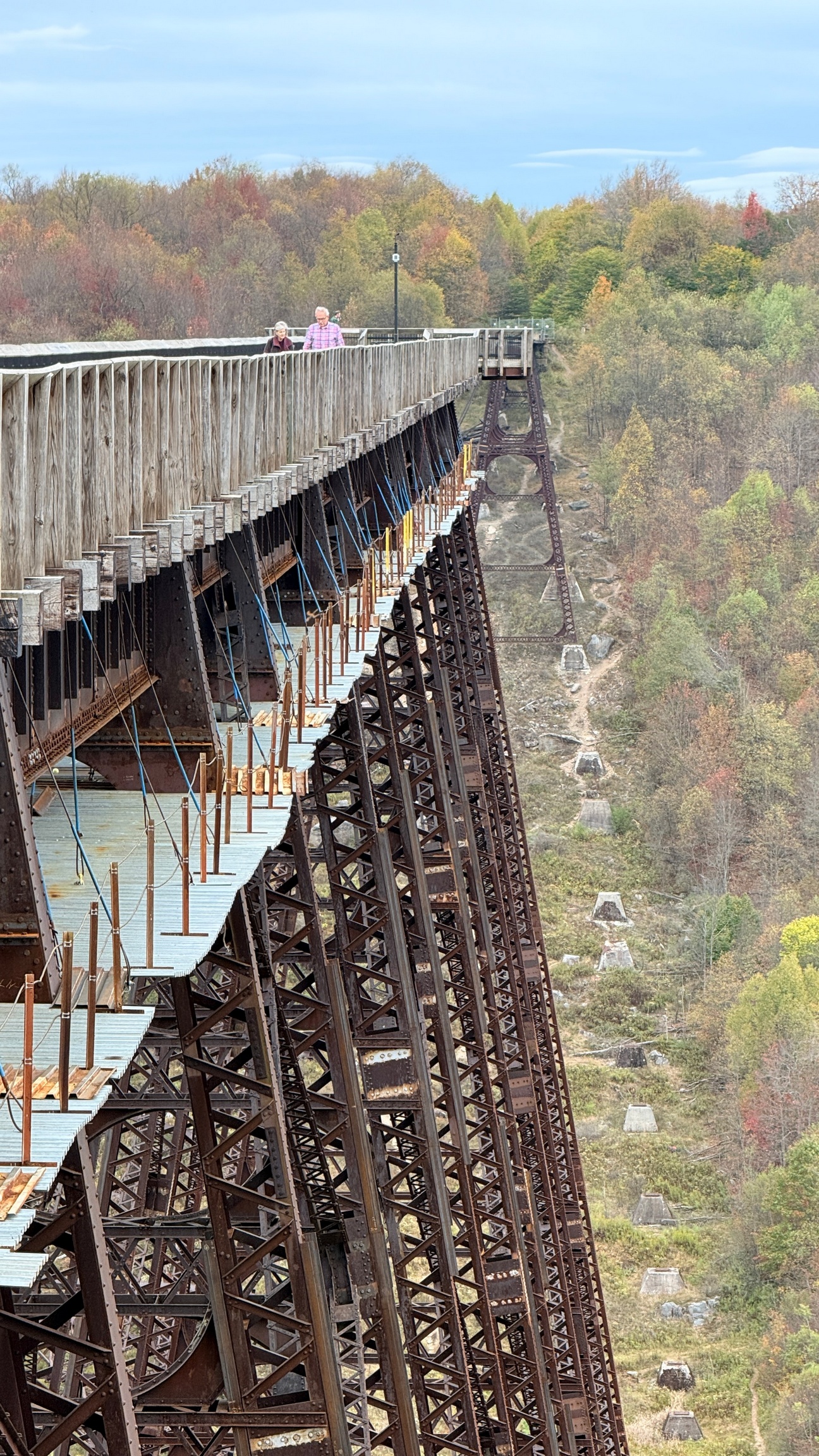 there. The Kinzua Bridge was a railroad trestle that spanned a deep valley over Kinzua Creek in McKean County, PA near Mount Jewett. When we lived in northern Pennsylvania from 1977 through 1993 it was one of the best locations to take visitors for a breathtaking view of the surrounding mountains as they walked all the way across the bridge which was 301 feet tall and 2052 feet long. It was built in 1882, the same year my grandfather was born. It was built by a crew of 40 in just 94 working days, between May 10 and August 29, 1882. At that time the bridge held the record for the tallest railroad bridge in the world and was considered the "eighth wonder of the world". While living in nearby Elk county we would walk across the bridge, then hike back through the valley which was a much longer walk than the bridge. Since we were quite young and somewhat athletic we did it on occasion as it was breathtaking, not only because of the views, but also it took our breath away due to the strenuous incline. However