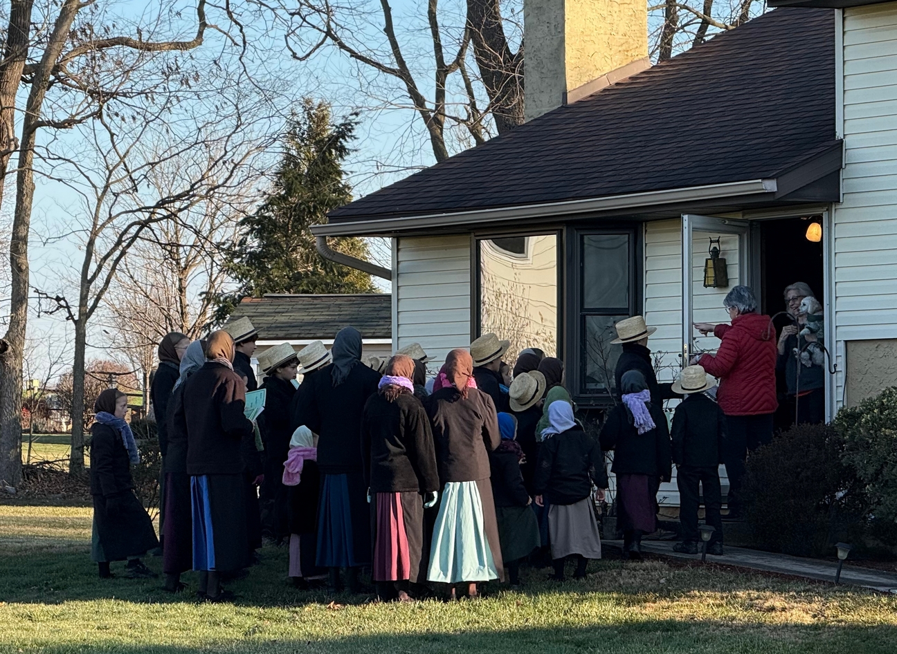 Stephen's Note: We had planned to share this message yesterday on Christmas Eve but our day had some pleasant interruptions. Early in the morning the children from our neighborhood Amish school came to carol. (See photos below) Then we had a problem with our 10 year old printer and Brooksyne had letters to print so out shopping we went!